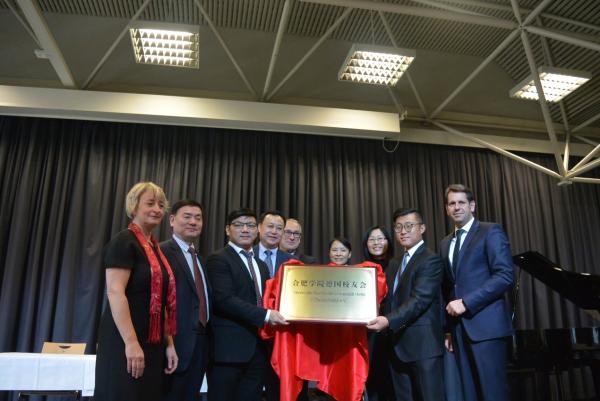 雅德大學(xué)校長在致辭中對中方代表團(tuán)的到來表示歡迎,對已開展的合作表示滿意,并對未來的合作寄予希望。下薩克森州經(jīng)濟(jì)部長致辭中表示,在教育的合作基礎(chǔ)上,期望未來能與中國進(jìn)行更多經(jīng)濟(jì)和文化的合作與交流。威廉港市市長首先祝賀合肥學(xué)院和雅德大學(xué)友好合作25周年,并期望在未來雙方能互派出更多的留學(xué)生。中國駐漢堡總領(lǐng)事館副總領(lǐng)事王薇在講話中表示今年是中德建交45周年,中德兩國在各個(gè)領(lǐng)域都有緊密合作。十九大繪制了中國未來的發(fā)展藍(lán)圖,一帶一路為中國的合作開拓新局面。中德兩國都確定維護(hù)世界和平,促進(jìn)共同發(fā)展至關(guān)重要。合肥學(xué)院就是中德聯(lián)合辦學(xué)和兩國文化交流很好的例子。合肥學(xué)院黨委書記蔡敬民表示,合肥學(xué)院在與雅德大學(xué)合作過程中取得了很多成績,為兩國培養(yǎng)了優(yōu)秀的人才,合肥學(xué)院非常重視與雅德大學(xué)的合作,并希望在今后的25年取得更輝煌的成就。在周年慶典上,蔡敬民書記和雅德大學(xué)校長簽署了新的合作協(xié)議,并為合肥學(xué)院德國校友會(huì)進(jìn)行了揭牌儀式。