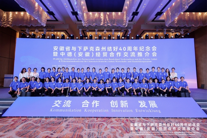 5月29日下午,安徽省與下薩克森州結好40周年紀念會暨中德(安徽)經貿合作交流推介會在合肥開幕,我校外國語學院組織50余名德語專業師生為活動提供引導及翻譯志愿服務。