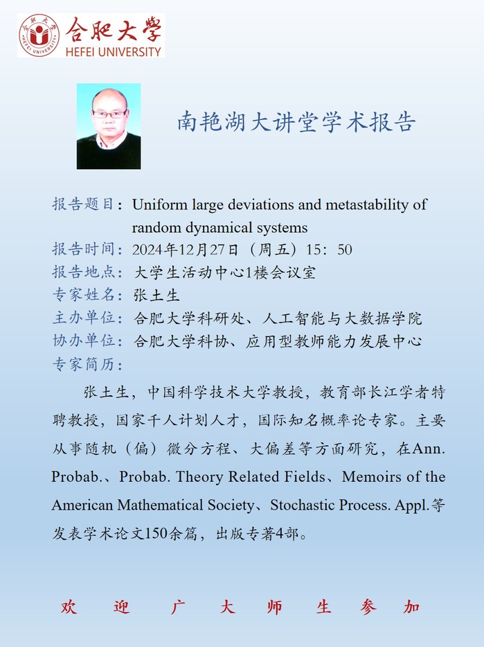 【南艷湖大講堂】Uniform large deviations and metastability of random dynamical systems