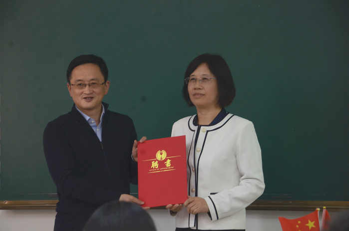 吳春梅為德國大陸馬牌輪胎(中國)有限公司的四位出席嘉賓頒發合肥學院客座教授聘書,感謝四位客座教授為雙元制大陸班專業乃至應用型高等教育改革所作出的貢獻。她介紹了中德教育示范基地發展歷程,表示“大陸班開創了人才培養新模式,是一個非常好的教育創新典范,也得到了雙方領導的認同。希望同學們珍惜機會,了解大陸班的人才培養模式,努力學習,成長成才。”