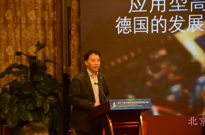 亨德里克·拉克勒以《職業教育與學術教育的有機融合——以新建的漢堡職業大學為例》為主題,指出了學術和職業教育融合的新模式,為應用型大學的發展提供了新思路和方法。報告過程中,亨德里克·拉克勒具體介紹了漢堡職業大學的運行機制,并指出一體化教育培訓模式會成為雙元制大學教育機制的有力補充。