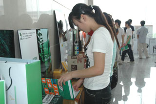此次作品展主要分為工業(yè)設計和藝術設計兩大類,內(nèi)容廣泛,題材新穎。展出的工業(yè)設計作品多為產(chǎn)品造型設計,并配有實物模型,便于參觀者更加直觀形象地了解學生創(chuàng)作的作品。公交站臺建造設計的人性化,家庭櫥具設計的情趣化,無不表現(xiàn)出畢業(yè)生設計理念的成熟和構思的精巧。此外,生活工藝品、家用小電器等作品因其實用、美觀、貼近人們的生活也受到了參觀者的好評。在《纖維藝術壁畫――奧運會入場壁畫設計》的作品前,許多老師和同學駐足觀看并對其整體圖案設計、工藝技巧嘖嘖稱贊。展出的藝術設計類作品也不乏精品,一些如“徽典裝飾”、“東菱芝園”之類的廣告招貼設計,作者通過對色彩、造型等方面靈活的運用將商品本身的特色及內(nèi)涵展現(xiàn)得淋漓盡致。一位參觀者談到對這些作品的感受時說:“我院藝術設計系畢業(yè)生能夠將書本上的理論知識應用到實際創(chuàng)作之中,并且設計得如此精良,確實很不錯。”