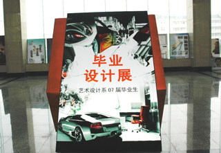 6月6日―8日,在藝術設計系的精心策劃和組織下,該系2007屆87名本科畢業(yè)生創(chuàng)作的300余件畢業(yè)設計作品以圖片和實物模型等方式在南艷湖校區(qū)主樓二樓大廳展出。