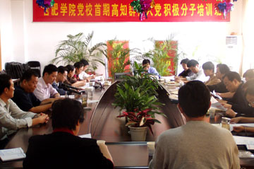 本次培訓班對象為我院15名向黨組織遞交入黨申請書且具有副高以上專業技術職務或博士學位的中層干部和教職工。院領導劉立成代表院黨委、院黨校向參加培訓班全體同志表示熱烈祝賀,并指出,黨校舉辦高知群體入黨積極分子培訓班是加強和改進黨建工作的一項重要工作。通過培訓,使入黨積極分子系統地學習黨的基本知識,加強對黨的全面認識,進一步端正入黨動機,堅定共產主義信念,增強為黨的事業奮斗的信心,更加忠誠于人民教育事業。劉立成副書記還從3個方面向大家提出希望:一是要認真接受黨組織培訓,學習理論知識,提高政治素養,不僅在組織上積極要求入黨,更要在思想上入黨。二是要統籌兼顧,合理安排,妥善處理工學矛盾,做到工作、學習兩不誤。三是要嚴格遵守黨校規章制度,在黨校,大家都是入黨積極分子,是學員,不分職位高低。