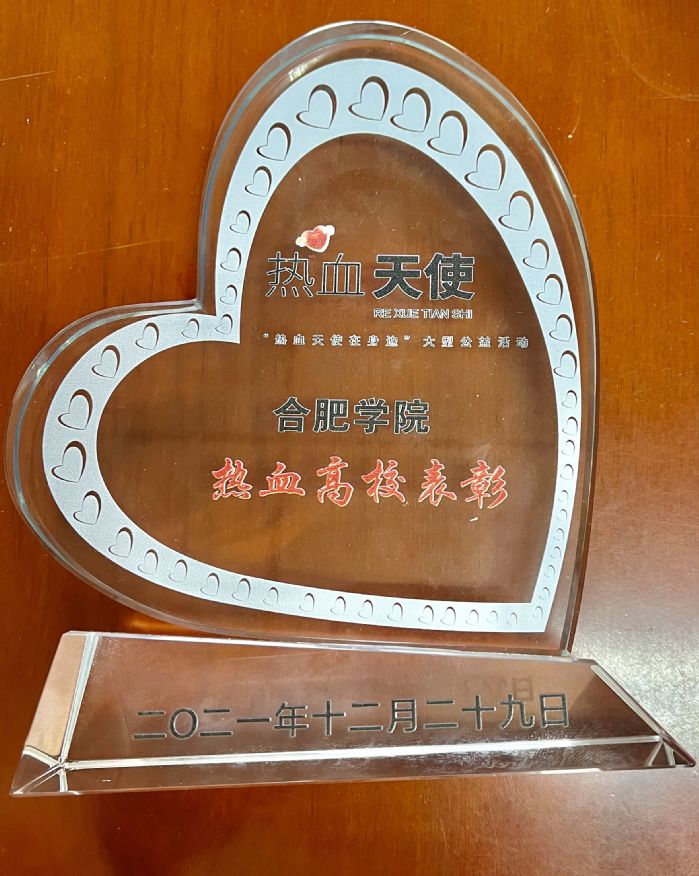 12月29日,由安徽省紅十字會和安徽省衛健委指導,安徽省血液管理中心、合肥市衛健委、合肥市紅十字會主辦,安徽省血液中心、合肥市中心血站、新浪安徽承辦的2021“高校熱血天使”頒獎典禮在安徽電視臺舉辦。我校榮獲“熱血高校”獎,我校學生王鴻志、叱干文強獲熱血貢獻表彰,祝金琴獲熱血鼓勵表彰,張政獲熱血參與表彰。