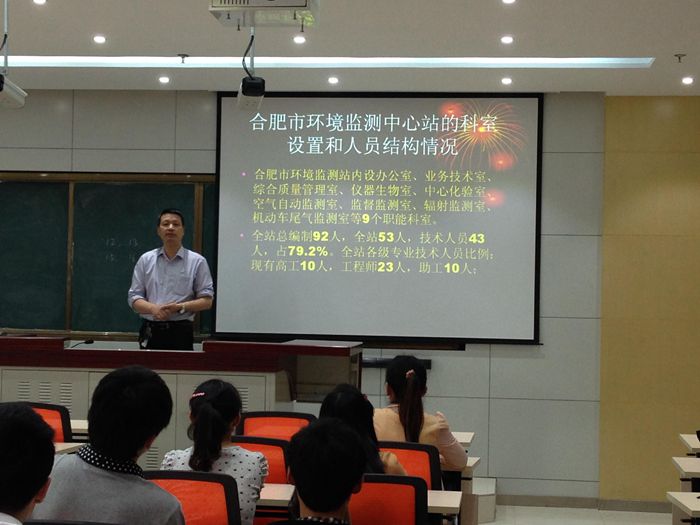 5月9日下午,“合肥市環(huán)境監(jiān)測(cè)的現(xiàn)狀和未來(lái)發(fā)展”的學(xué)術(shù)報(bào)告在我校35幢312報(bào)告廳舉行,報(bào)告會(huì)主講人是合肥市環(huán)境監(jiān)測(cè)中心站副站長(zhǎng)李菁。我校環(huán)境工程專業(yè)研究生及部分導(dǎo)師到場(chǎng)聆聽。