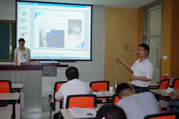 此次報(bào)告會(huì)歷時(shí)一天,由2012級(jí)16名研究生分別就其已發(fā)表或正待發(fā)表的學(xué)術(shù)論文、申請(qǐng)或正在申請(qǐng)的專利作為報(bào)告的內(nèi)容。他們分別詳細(xì)介紹了“巢湖流域農(nóng)村生活垃圾治理模式研究”、“巢湖藍(lán)藻熱解制取生物質(zhì)油研究”、“離子交換樹脂處理污水中的重金屬”、“鐵礦石尾礦浮選工藝”、“磷石膏規(guī)模化生產(chǎn)建筑砌塊的無害化處理工藝”、“離子色譜法測定合肥市PM2.5微粒中的水溶性陰離子”、“用蚯蚓處理牛糞增加其養(yǎng)分含量的研究”等研究課題。通過評(píng)委老師打分,最后評(píng)選出一、二、三等獎(jiǎng)及優(yōu)秀獎(jiǎng)。郭鵬飛獲得一等獎(jiǎng),陸田玉、王先琴獲得二等獎(jiǎng),李園園、付珍、邴常遠(yuǎn)和慈娟獲得三等獎(jiǎng)。