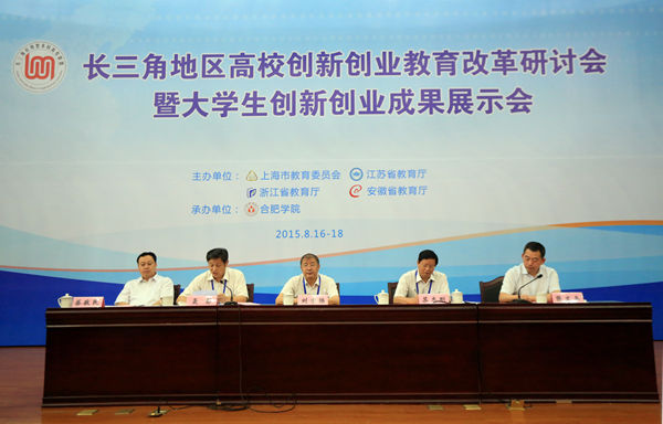 8月18日,長三角地區(qū)高校創(chuàng)新創(chuàng)業(yè)教育改革研討會暨大學生創(chuàng)新創(chuàng)業(yè)成果展示會在合肥學院順利落幕。本次會議集中展示了長三角地區(qū)高校大學生的創(chuàng)新創(chuàng)業(yè)成果,緊緊圍繞深化創(chuàng)新創(chuàng)業(yè)教育改革,推動“大眾創(chuàng)業(yè),萬眾創(chuàng)新”服務驅動戰(zhàn)略的主體深入進行了研討和交流。來自全國30多個省份高教處的領導、50余所高校代表參加此次研討會。會上,30多位專家領導作了專題報告和發(fā)言,從不同角度和背景談了經(jīng)濟新常態(tài)下創(chuàng)新創(chuàng)業(yè)教育改革的看法和意見。