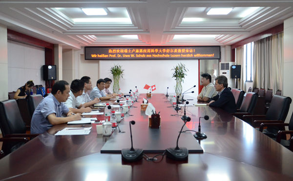 8月22日,瑞士盧塞恩應(yīng)用科學(xué)大學(xué)外辦主任舒爾茨教授來訪我校。副校長劉建中在行政樓九樓東會議室接待了來賓,國際交流合作處、經(jīng)濟(jì)系、建筑工程系及藝術(shù)設(shè)計系等相關(guān)系部門負(fù)責(zé)人參會。雙方就兩校后續(xù)合作潛力進(jìn)行了深入探討。