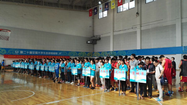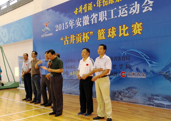 8月27日,由安徽省教育工會、合肥學院承辦的2015年安徽省職工運動會籃球比賽在我校體育館熱力開賽。省總工會副主席、省教育工會主席許曉東,省體育局副局長陳海軍,合肥學院黨委副書記丁明等領導出席開幕式;丁明副書記代表學校在開幕式上致歡迎詞。來自各市及行業等26支男子代表隊和4支女子球隊參加比賽,比賽將于9月1日結束。