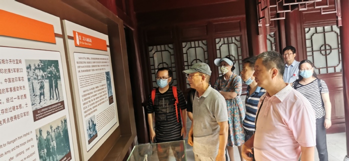 會(huì)員們首先參觀了位于廬江縣的新四軍江北指揮部舊址。新四軍江北指揮部是1939年5月根據(jù)黨中央指示,張?jiān)埔荨⑷~挺、鄧子恢、羅炳輝等在安徽省廬江縣東湯池組建的。新四軍江北指揮部成立后,整編了江北各部隊(duì),積極東進(jìn)抗日,開展了艱苦卓絕的反“圍剿”和反“摩擦”斗爭(zhēng),創(chuàng)建和發(fā)展了抗日根據(jù)地,為開創(chuàng)華中地區(qū)革命的新局面做出了重要貢獻(xiàn)。