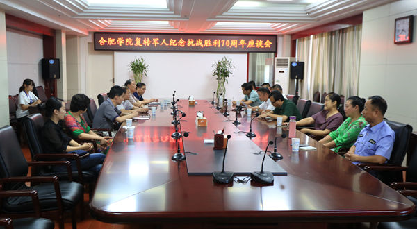 9月7日,由武裝部組織的合肥學院復轉軍人紀念抗戰勝利70周年座談會于行政樓九樓東會議室舉行。校黨委副書記丁明出席,統戰部、保衛處等相關部門人員以及教職工復轉軍人參加座談。會議由保衛處處長肖保生主持。