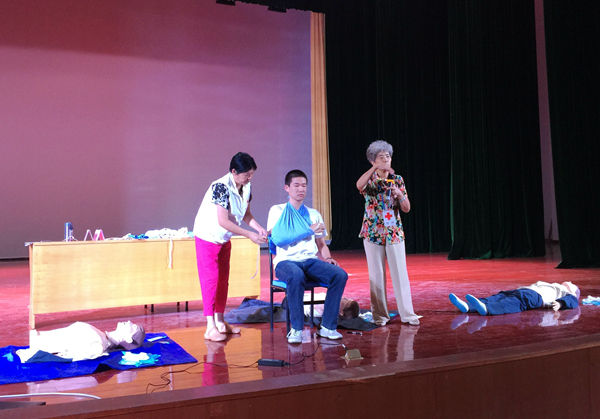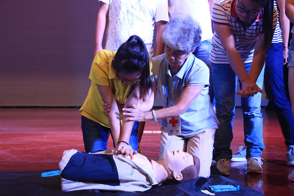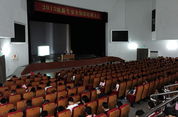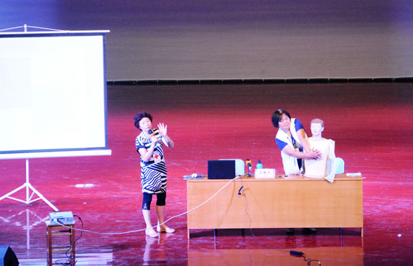 今年6月,我校外語系2013級日語專業馬朝霞、朱磊等同學在校內對落水者實施心肺復蘇急救的事跡感動了廣大師生,也再一次將緊急救護知識普及的重要性拉入了我們的視野。今年,我校新生入學教育中由學生處、公管處特別邀請合肥市紅十字會、市疾控中心專家就普及基本救護知識,提高2015級新生面對突發事件的現場應急救護能力,加強青少年自救、互救、急救的能力為新生開展急救知識培訓及傳染病防治的講座。為保證培訓效果,提高新生參與機會,講座共分分四場進行。