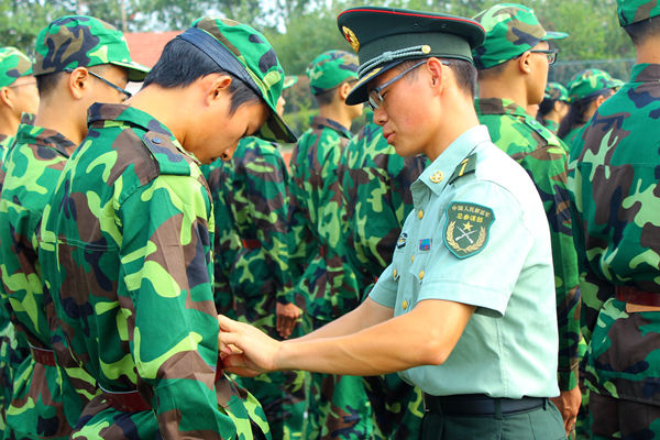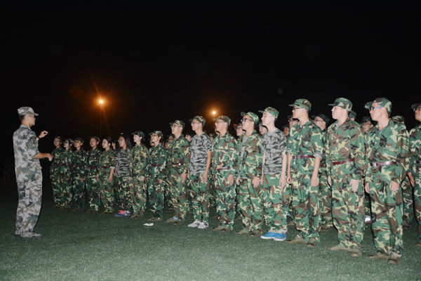 嚴(yán)格的訓(xùn)練中,亦有輕松一刻。隨著夜幕的降臨,訓(xùn)練場(chǎng)上傳來(lái)陣陣歡笑聲,原來(lái)是為增進(jìn)對(duì)彼此的了解,新生們將“非誠(chéng)勿擾”的游戲融入到了軍訓(xùn)中,獲選者必須向場(chǎng)下的同學(xué)們進(jìn)行自我介紹。在同學(xué)們熱烈掌聲與歡呼聲中,14連的教官演唱了一首紅歌,伴著歌聲,同學(xué)們不由自主地打起了節(jié)拍,輕聲應(yīng)和著。“他們都很天真、單純、可愛(ài),和他們一起很開(kāi)心。”教官表示,“其實(shí)軍訓(xùn)是希望給他們精神上的教育,讓他們懂得堅(jiān)持,加強(qiáng)同學(xué)們凝聚力,更增加他們的國(guó)防意識(shí)。”