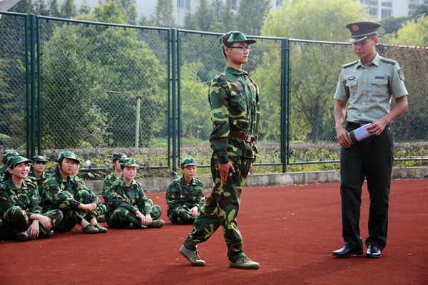 “稍息,立正,向右看齊——”,教官洪亮的口令聲一響起,整齊的小碎步便隨之邁起,隊(duì)形在轉(zhuǎn)瞬之間變得整齊劃一,而后四周便安靜得只剩下平緩的呼吸聲了。整隊(duì)完畢后,各連隊(duì)便進(jìn)入了站軍姿、齊步、正步等緊張訓(xùn)練中。“雖然每次訓(xùn)練都很累,但這卻使我認(rèn)識(shí)了許多人,令我很快樂(lè)、很開(kāi)心。”外語(yǔ)系的嚴(yán)敏同學(xué)在休息期間這樣說(shuō)道,其實(shí)軍訓(xùn)并沒(méi)有想象中的那么累,而且天氣也不熱。