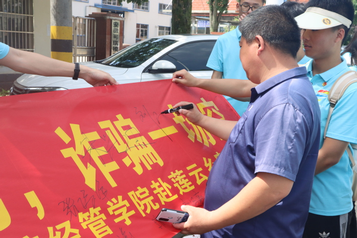 提高農民群眾科學素質、大力普及科學知識刻不容緩,實踐期間團隊深入大街小巷開展主題宣傳,圍繞反電信詐騙、疫情防控、全民健身、垃圾分類、黨史教育等內容進行知識宣講和問卷調研,并熱情邀請居民們參與簽名活動。