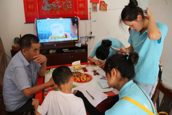 由于居住地離活動(dòng)開展地有1個(gè)小時(shí)左右的車程,為了節(jié)省時(shí)間,隊(duì)員們只能早出晚歸,放棄了回駐地午休,盡快完成每天的任務(wù)。隊(duì)員們就這樣頂著散發(fā)“溫度”的艷陽,任由汗水浸濕了隊(duì)服,挨家挨戶地幫助孤寡老人激活電子醫(yī)保憑證,并且宣傳相關(guān)知識(shí)、發(fā)放宣傳單等。