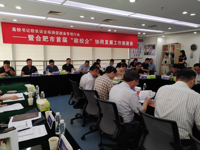 7月18日下午,由安徽省大中專畢業生就業指導中心、合肥市人力資源和社會保障局主辦,合肥市高校創業就業聯合會、新安人才網承辦的高校書記校長訪企拓崗促就業專項行動暨合肥市首屆“政校企”協同發展工作推進會在新安人才網舉行。推進會旨在全面深化校企合作、拓寬畢業生就業渠道、優化就業工作機制、促進供需精準對接,合肥10家用人單位負責人和合肥11所高校代表參加了會議。我校先進制造工程學院黨委書記杜娟、學工辦副主任梅志強參加會議。