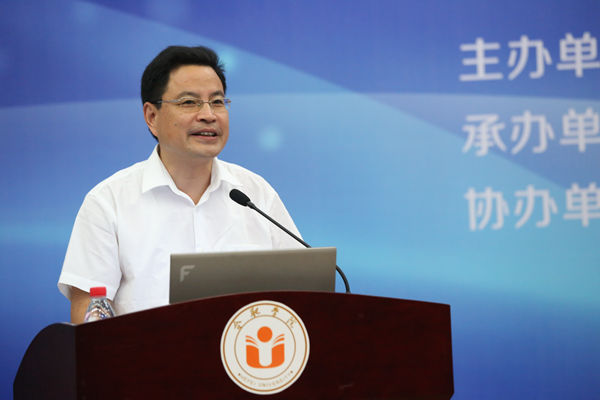 9月29日下午,第三屆安徽文化論壇閉幕式在合肥學(xué)院圖書館報(bào)告廳A廳順利召開。安徽省社科院院長、黨組書記朱士群,合肥學(xué)院黨委書記蔡敬民,合肥學(xué)院黨委副書記、校長張文兵,省社科院科研處處長陳瑞,安徽農(nóng)業(yè)大學(xué)人文學(xué)院黨委書記孫超,合肥學(xué)院中國語言文學(xué)系主任詹向紅出席會(huì)議。300余名專家學(xué)者及學(xué)生代表參會(huì)。閉幕式由蔡敬民主持。