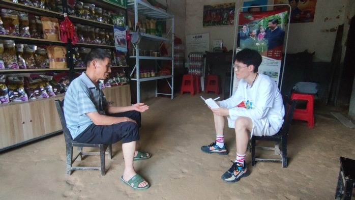 圖為陳鑫同學在采訪金寨縣大灣村村民陳澤申