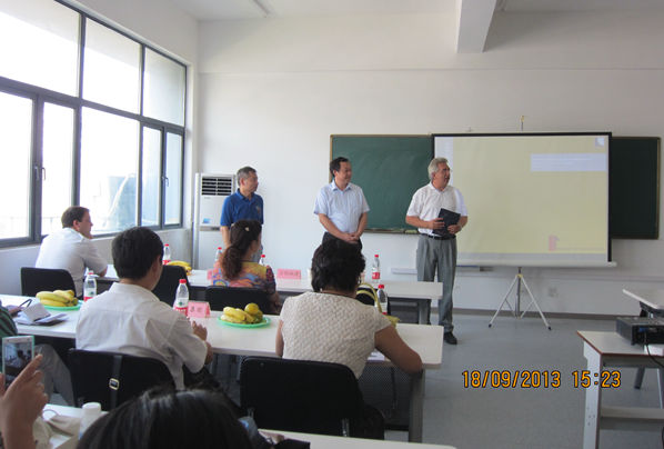 2013年9月,他再次來到合肥學院執教,在當年的安徽建筑節能技術平臺研討會上,賴默教授和他的德國助手介紹了德國建筑節能技術設計軟件,演示了常用建筑材料節能性能的檢測試驗,并分享了他主持的“中國安徽—德國下州‘創新展亭’”項目。該項目是賴默教授從2008年開始謀劃,到建成歷時兩年多時間。這是一棟集多種建筑節能技術和新型建筑節能材料于一體的,開展建筑節能工程應用實驗研究的建筑物,曾作為2010年上海世博會德國園外項目參展。項目展示了當前建筑節能工程領域新型保溫墻體系統、地源熱泵技術和通風系統、吊頂輻射制冷技術、采暖玻璃等新型低能耗建筑形式和技術,為深入地了解建筑節能技術工程應用水平,學習和發展建筑節能先進技術工程應用提供了一個可借鑒的范例。