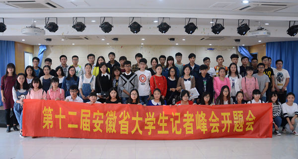 10月17日,第十二屆安徽省大學生記者峰會選題會于我校大學生活動室一順利開展。來自合肥市內的25余所高校代表及我校學生會、學生社團聯合會等學生組織代表參加此次開題會。會上,我校學生代表對 “‘互聯網+’下的萬眾創新時代”和“自媒體 守一方凈土”兩個擬選題進行闡述,60余名校媒學生代表針對選題各抒己見,暢所欲言。