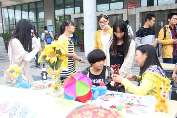 靈心居手工社則展示了各類手工作品,由珠子串成的可愛(ài)小狗、漂亮玫瑰以及紙質(zhì)的向日葵、繡球等無(wú)不彰顯手工社成員的心靈手巧。協(xié)會(huì)成員還現(xiàn)場(chǎng)用氣球扎出小狗送予體驗(yàn)者。國(guó)畫(huà)背景的展板別出心裁,翰墨軒現(xiàn)場(chǎng)書(shū)寫(xiě)字幅贈(zèng)與在場(chǎng)同學(xué)。“以前就對(duì)書(shū)法感興趣,一直想加入翰墨軒,但由于各種原因一直沒(méi)能加入,這次我又過(guò)來(lái)了。”合肥學(xué)院2013級(jí)外語(yǔ)系學(xué)生樂(lè)蓉蓉對(duì)記者說(shuō)道。