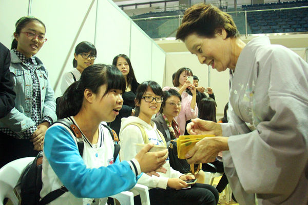 開幕式結束后,張文兵會見了久留米市長楢原利則與議長別府好幸一行,雙方一致表示希望在本次文化交流活動的基礎上,共同推動合肥學院與久留米市,尤其是與久留米大學的合作。會談后,中日雙方領導共同體驗了日本茶文化之道,參與活動的學生也先后于展區進行多種中日文化互動與體驗。