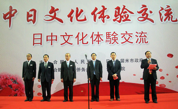 合肥市于1980年與久留米市締結為友好城市,為慶祝兩市結好35周年,此次中日文化體驗活動設有中日雙方文化團的特色展覽專區,中方通過烙畫、剪紙以及書法展現中國文化,日方用手繪書信、茶道、折紙藝術以及和服試穿等彰顯日本文化。