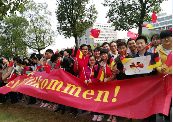 “雖然大家沒有近距離接觸的機會,而且工作量較大,但所有的同學都表現的非常出色、得體。從當時現場各大媒體所拍攝的照片中就不難看出,當總理到達我校時,現場沒有出現擁擠的情況,反而是場面十分壯觀,震撼,同學們也都十分激動,積極表達了自己的熱情和激情。每次看到這些照片,我的內心也都非常激動,甚至有時連眼淚都會忍不住的留下來。”每當說起那天的盛況,杜書記還是非常激動和自豪。談及李克強總理評價合肥學院30年來的發展壯大是中德務實合作的成功典范時,她說,“這既是對我們的肯定,對中德辦學成果的肯定,更是對我們的鞭策。這對所有的學生工作提出了更高的期望和要求,希望每個人都牢記總理的囑托和期望,認真做好手頭工作,努力把辦學成果進一步深化,希望在下一個三十年到來之際,中德合作更加根深葉茂。”