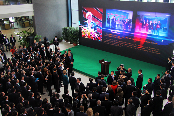 作為最早參與該工作的部門和重要的對外溝通橋梁,國際交流合作處全體工作人員在外事方案、成果展、畫冊、合作協議、外賓接待等多項重要工作中發揮出色,賈峰處長平均每天接打40多個電話,與國家和省市相關部門保持著緊密聯系。面對時間緊、任務重,孫建安副處長和洪磊老師連續2周以辦公室為家,不眠不休地工作著。據他們回憶,有一次,連續30多個小時沒合眼。在整個過程中,他們共電訪了30多位中德友人,收集了1400多張珍貴的歷史圖片,為成果展、畫冊提供了充足的資料。