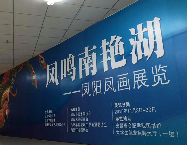 為更好地傳承與發展鳳陽畫這一民間傳統藝術、加強鳳陽縣對外文化與文藝交流,11月3日,由院工會、團委、鳳陽縣文學藝術界聯合會共同主辦的“鳳鳴南艷湖”鳳陽畫展在我校圖書館一樓展廳舉行。鳳陽縣文聯主席呂建東、鳳陽縣文聯秘書長孟慶國、縣文聯副秘書長、鳳陽鳳陽畫研究會會長唐勤智,鳳陽縣美術家協會主席王金生,我校工會主席崔國慶,工會副主席劉小秧等老師出席了本次開幕式,來自我校14個系100余名師生到場參加。開幕式由團委副書記杜娟主持。黨委副書記丁明參觀了鳳陽鳳畫展并與鳳陽文聯主席呂建東等進行了親切交流。