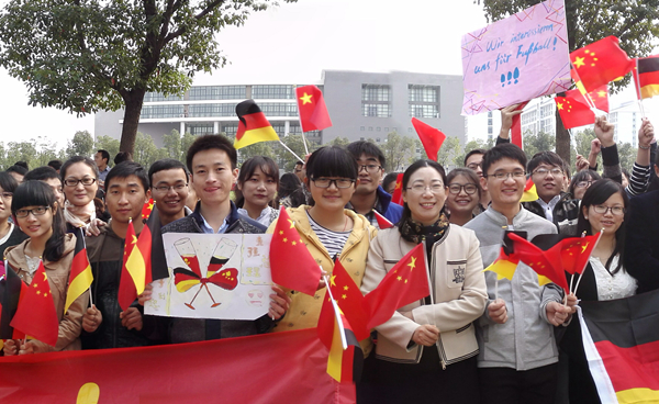10點40分,王曉艷還清楚地記得,那時總理走出大廳,在熱烈的歡呼聲中徑直走向他們。遠遠地,總理就先伸出了手,雖然王曉艷非常緊張,但她還是第一個上前握住了總理的手。“當真正握到總理的手時,所有的緊張都消失了,總理的手真的很細膩、很溫暖,就像親人一樣。” 王曉艷激動地說到。“總理,歡迎您回家!”這句話沒有經過任何思考,卻是對總理最發自肺腑的告白。在采訪中,王曉艷還向記者說出了她的三點感受——激動、感動、觸動。她認為,兩國總理的共同到訪,是對我校近年來一系列改革以及中德合作項目最大的認可,她期望最終我校學子能夠學業有成,學校和中德合作項目也能夠有更好的發展。