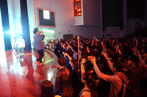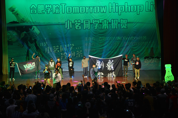 變幻的燈光、勁爆的音樂,本場晚會在上下翻飛的花式籃球表演中拉開了帷幕。“郎對花姐對花,一對對到塘埂下”,嘻哈搭配黃梅戲,中國傳統戲劇文化與hiphop的碰撞,別具一格的演繹方式另觀眾耳目一新。晚會現場持續升溫,觀眾情緒高漲,《Live Free》《萬眾矚目》等8首動感的歌嗨翻全場,點燃了全場觀眾的熱情,觀眾涌到舞臺前方和演員們一起揮舞著手臂隨著節奏搖擺,舞動,釋放著青春的活力與激情。在晚會氣氛到達高潮之際,如流水般溫柔細膩的吉他聲改變了晚會的氛圍,沐浴在兩束輕柔的舞臺燈光下,我校W.A.O Beatbox協會的安陽和鄭大偉將Beatbox和吉他彈唱完美結合,融合了Beatbox的動感活躍和吉他的清新柔和,配上深情的演唱,一首《斑馬 斑馬》陶醉了全場。《Beatbox Solo》《皖北暴徒》《High for the night》等節目將晚會頻頻推向高潮,表演嘉賓們走下舞臺,與觀眾圍成一圈,帶來了最后一首動感勁爆的《murder》。晚會在熱烈的氛圍中圓滿落幕。