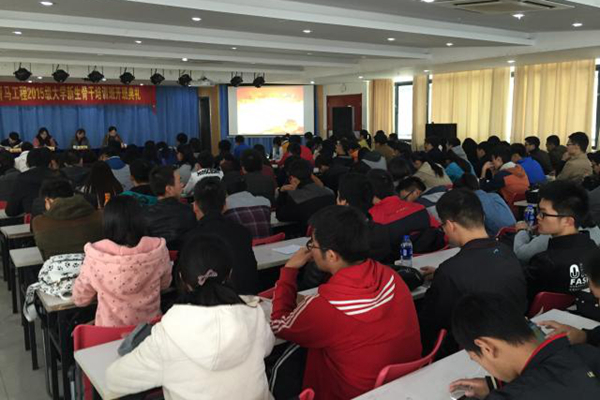 11月上旬,團委舉辦了第十六期青年馬克思主義者培養工程2015級大學生新生骨干培訓班開班典禮,新生學員代表江旭同學發言,表示自己會珍惜這次培訓機會,提高開展團學工作的能力,努力做一名優秀的學生干部。團委老師針對本次青馬工程培訓提出了要求,從學習、工作、生活三個方面要求大家做好學生干部工作,以身作則,提高自身綜合素質;明確人生目標,樹立遠大志向,制定科學規劃;珍惜培訓機會,打下扎實的理論基礎。