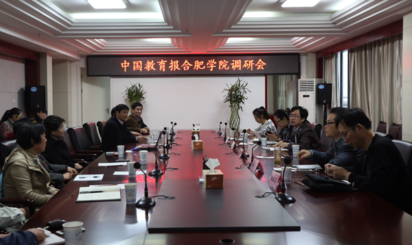 11月18日,中國教育報(bào)副總編張顯峰、編委儲(chǔ)召生、新聞中心副主任柴葳、安徽記者站副站長俞路石等一行來我校調(diào)研地方應(yīng)用型高校轉(zhuǎn)型發(fā)展工作,安徽省教育廳高等教育處處長儲(chǔ)常連陪同考察。我校黨委副書記、校長張文兵熱情接待了張顯峰一行,對(duì)中國教育報(bào)、安徽省教育廳對(duì)學(xué)校的支持表示感謝,并介紹了學(xué)校轉(zhuǎn)型發(fā)展情況。