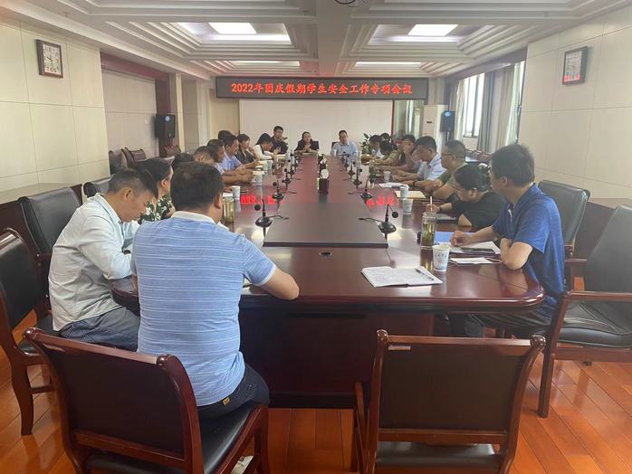 為進(jìn)一步研判國慶假期前后學(xué)生安全、服務(wù)與教育工作形勢(shì),做好假期各項(xiàng)學(xué)生工作,保障校園穩(wěn)定、學(xué)生安全,9月29日上午,我校在行政樓召開國慶假期學(xué)生安全工作會(huì)議,校黨委委員、學(xué)生處處長朱濤主持會(huì)議,學(xué)生處副處長陶龍澤、各二級(jí)學(xué)院黨委副書記、學(xué)工負(fù)責(zé)人參會(huì)。