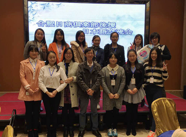 11月21日,由合肥日商俱樂部特別贊助組織,安徽大學(xué)主辦的2015年“合肥市大學(xué)生日語交流會”在豐大國際酒店舉行。外語系日語教研室主任鮑德裕帶隊,2013級日語黃倩倩和奚相昀兩位同學(xué)分別榮獲“演講比賽第一”和“團(tuán)體介紹第一”的優(yōu)異成績,一舉獲得本次活動兩個環(huán)節(jié)的雙冠軍。
