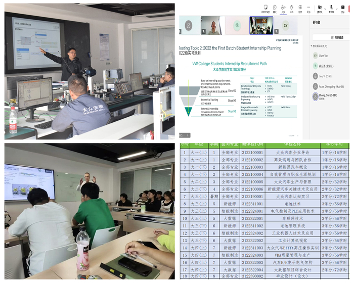 針對“校熱企冷”現象,積極推動校企資源共享機制,通過教學與培訓場地、實驗室與實訓中心共享機制,提升企業參與積極性。整合校企雙方信息,實現供需精準對接,定期組織校企座談會,促進高效溝通合作。設立大眾學院管理委員會,累計解決校企課程設置、實習實訓、師資調配等跨部門問題20余項。實施“雙掛”制度,累計邀請28名企業教師擔任兼職教師,共同開發《新能源汽車關鍵技術及應用》《電氣控制及PLC應用技術》《工業機器人技術及應用》和《汽車E/E電子電氣架構》等19門校企課程。