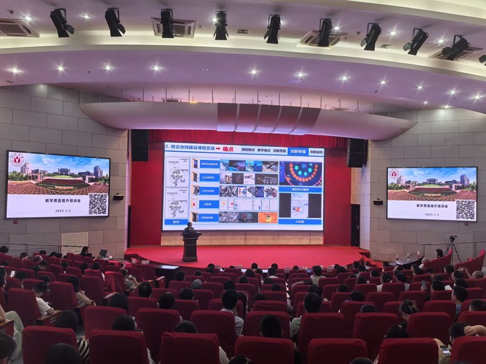 為推進教育教學改革,規范教師教學行為,全面提升教學質量,7月3日,教學質量監控與評估處處長儲忠和先進制造工程學院谷曼就教學質量提升為全校老師開展了專題培訓。校院教學督導、教學院長、專業負責人、教學辦主任、近5年新進教師及一線教師代表近300人參加。
