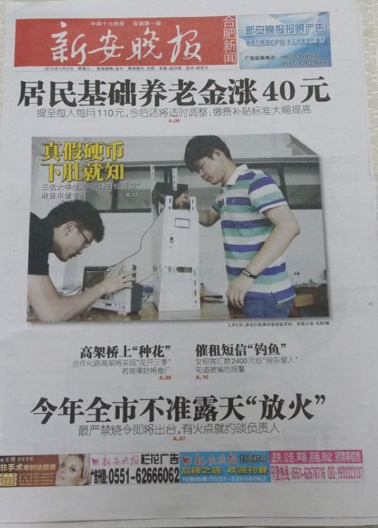 “公交投幣箱每天吞上百假硬幣、游戲幣”……對于這樣的新聞,人們似乎已經不陌生了。如果有一個能看出假幣的智能投幣箱,是不是就能解決這一難題?近日,合肥學院三名大學生就研發了一個“全自動硬幣分類清點系統”。該系統不僅能自動鑒別、分類、清點硬幣,還輕巧便攜、成本低廉。