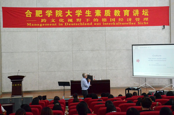 奚偉德教授的講座題為“從跨文化視野看德國(guó)經(jīng)濟(jì)管理”,他首先從西方視角解析文化的內(nèi)涵,并對(duì)比中國(guó)視角下的文化內(nèi)涵,通過(guò)對(duì)文化進(jìn)行深入分析,以中國(guó)、德國(guó)以及美國(guó)等為例,講述了不同文化的具體表現(xiàn)形式。奚韋德教授通過(guò)大量的圖片和數(shù)據(jù),生動(dòng)有趣地對(duì)中德合資企業(yè)的跨文化管理進(jìn)行了深入淺出的分析。同時(shí),奚偉德教授還與師生進(jìn)行了互動(dòng)和溝通。精彩的報(bào)告內(nèi)容,風(fēng)趣幽默、深入淺出的演講風(fēng)格使得報(bào)告現(xiàn)場(chǎng)氣氛輕松活躍。此次報(bào)告增進(jìn)了與會(huì)師生對(duì)德國(guó)文化的了解和認(rèn)識(shí),開(kāi)拓了師生的國(guó)際視野,激發(fā)了學(xué)生的學(xué)習(xí)興趣。