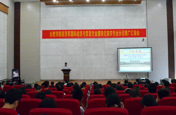 7月20日與22日,我校在圖書館學術報告廳召開了模塊化教學專業示范推廣會,校長張文兵、副校長劉建中、校內外專家以及教務處、各系相關人員出席會議。國際經濟與貿易、土木工程兩個專業共20個課程模塊負責人圍繞著模塊基本信息、模塊間關系、模塊的知識重組和應用以及模塊后續建設等問題進行了匯報。專家組在聽取各項目組的匯報后,分別提出修改意見和建議。
