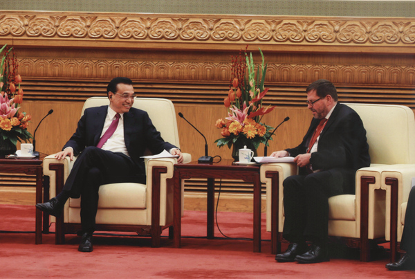 國務院總理李克強2月5日下午在人民大會堂親切會見在華工作的部分外國專家并同他們座談。我??妥淌凇⒌聡┨乩瓲査傻聭每茖W大學校長法爾克·霍恩、我校韓籍教授趙誠惠、樸南奎夫婦,作為在皖外國專家代表出席了座談,其中霍恩教授作為僅有的四位發言代表之一,重點就“中國制造2025”與“應用型高等教育改革”作了發言,并就我校“中德教育合作示范基地”籌建情況作了簡要匯報。