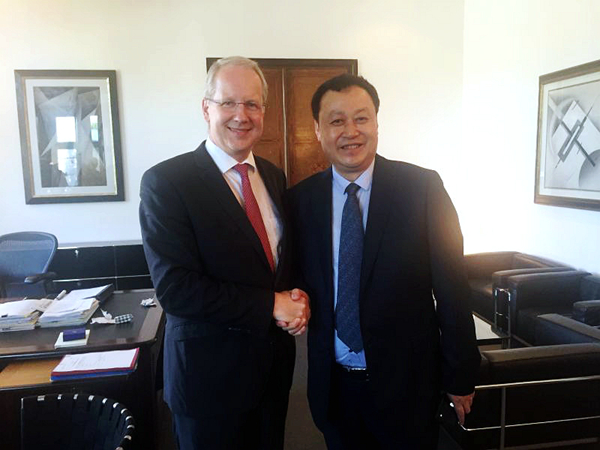 協議簽署 左一:克魯伊茲校長;左二:蔡敬民書記;左三:科勒先生