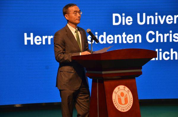 Pr?sident Wulff als Botschafter von der chinesischen und deutschen Freundschaft leistet einen gro?en Beitrag zur freundlichen Beziehung zwischen China und Deutschland und f?rdert die Zusammenarbeit und den Austausch zwischen der Provinz Anhui und Niedersachsen. Er beachtet darüber hinaus auch sehr den Aufbau und die Entwicklung der Universit?t Hefei. W?hrend der Konferenz der Weltfertigungsindustrie 2018 besuchte Pr?sident Wulff noch einmal unsere Universit?t, was sowohl die tiefe Freundschaft zwischen der Provinz Anhui und Niedersachsen, als auch seine Fürsorgegegenüber unserer Universit?t zeigte.