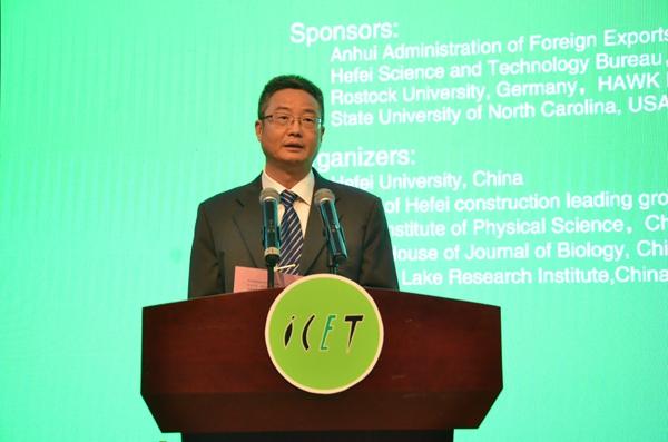 Herr Wang Qidong, Pr?sident der Universit?t Hefei, leitete die Er?ffnungszeremonie. Herr Prof. Dr. Cai Jingmin, Parteisekret?r der Universit?t Hefei, hielt die Er?ffnungsrede. Im Namen von den Studenten und Dozenten hie? er alle G?ste herzlich willkommen. Bei der Rede betonte er, dass die Universit?t Hefei seit langem gro?en Wert auf den Umweltschutz lege. Das Institut für das Umweltprojekt der Stadt Hefei, das Institut für den Chao-See und andere Plattformen seien errichtet worden. Das Motto ?grs Mottosse und grüne Berge sind unbezahlbare Sch?tze“ müsse stets aufgebaut und durchgeführt werden. Er erhoffe sich, dass alle Experten ihre Erfarungen und Techniken anwenden und weiterhin zum Umweltschutz Beitr?ge leisten würden.