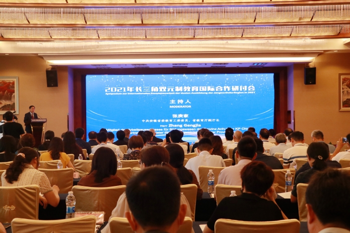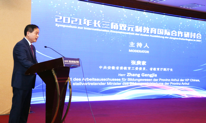 7月6日上午,由安徽省教育廳主辦、合肥學院承辦的長三角雙元制教育國際合作研討會在合肥召開。來自79所高校和企業的190余名代表出席本次會議,就雙元制教育的國際合作探討交流、共享經驗。開幕式由中共安徽省委教育工委委員、省教育廳副廳長張庚家主持。