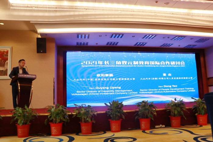 大眾汽車(安徽)有限公司首席人力資源官邵劍在致辭中強調,為貫徹落實習近平總書記關于職業教育的重要指示,落實全國職業教育大會精神,開展中國教育部與大眾集團即將簽署的合作項目,大眾汽車將全力推進雙元制項目的施行。他表示,大眾集團將會建立培訓中心,提供培訓場所、培訓支持,積極與本地高校合作,為學生提供發展空間,創新校企合作模式。