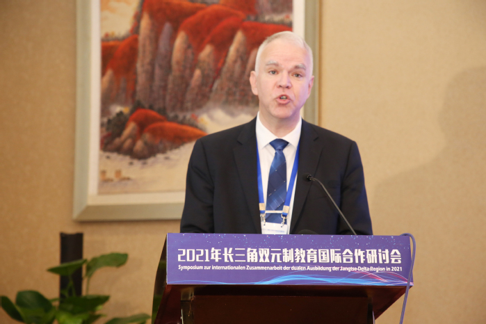 喬治·施泰德在題為《發展——合作——創新 過去、現在與未來》的報告中指出,高校是教育的核心部分,職業教育引領創新之路。中德合作由來已久,他希望能與更多高校建立良好的溝通合作關系,運用雙元制教育模式,推動人才培養方案改革創新,使學生的綜合能力和專業技能不斷提高,讓中國更多的職業院校受益。
